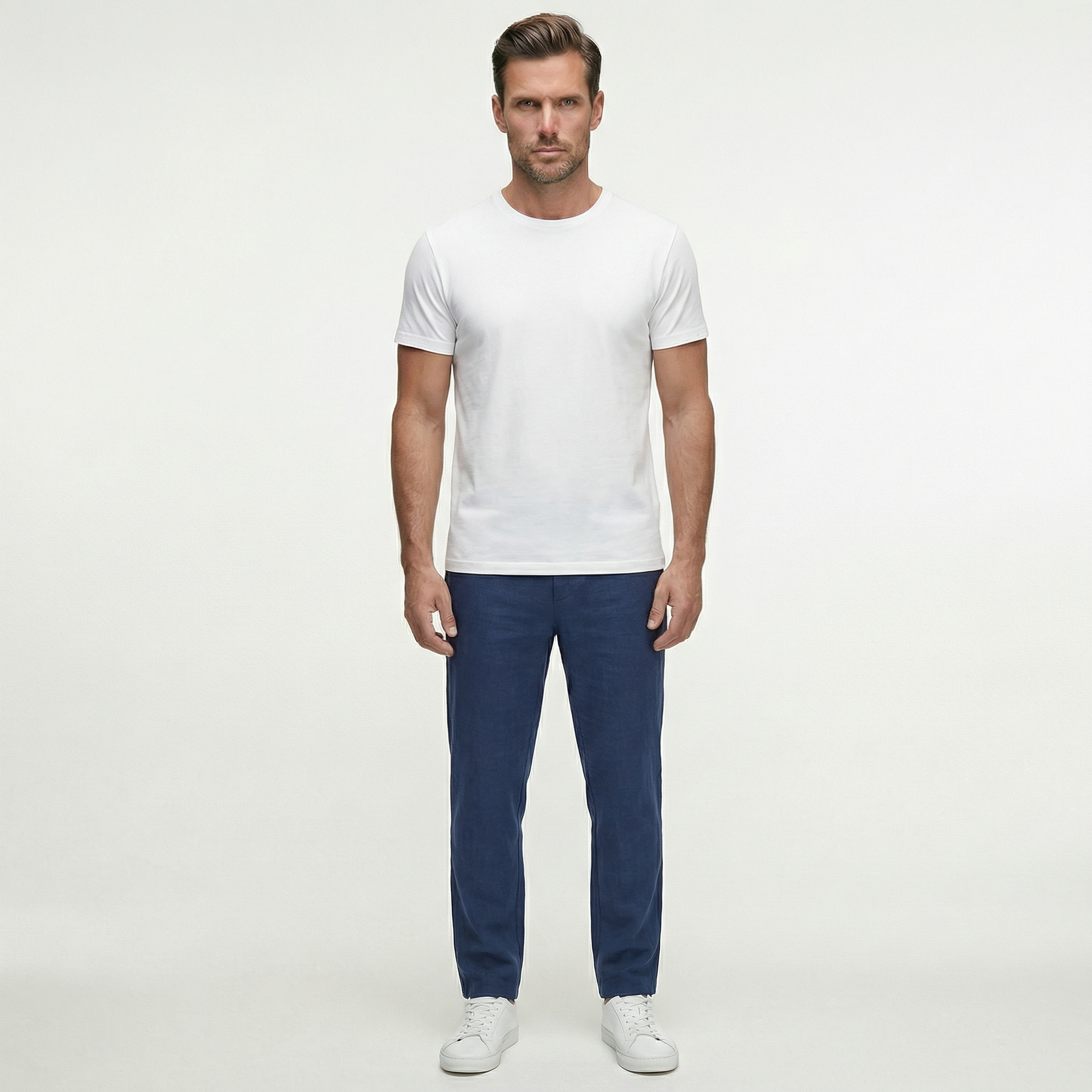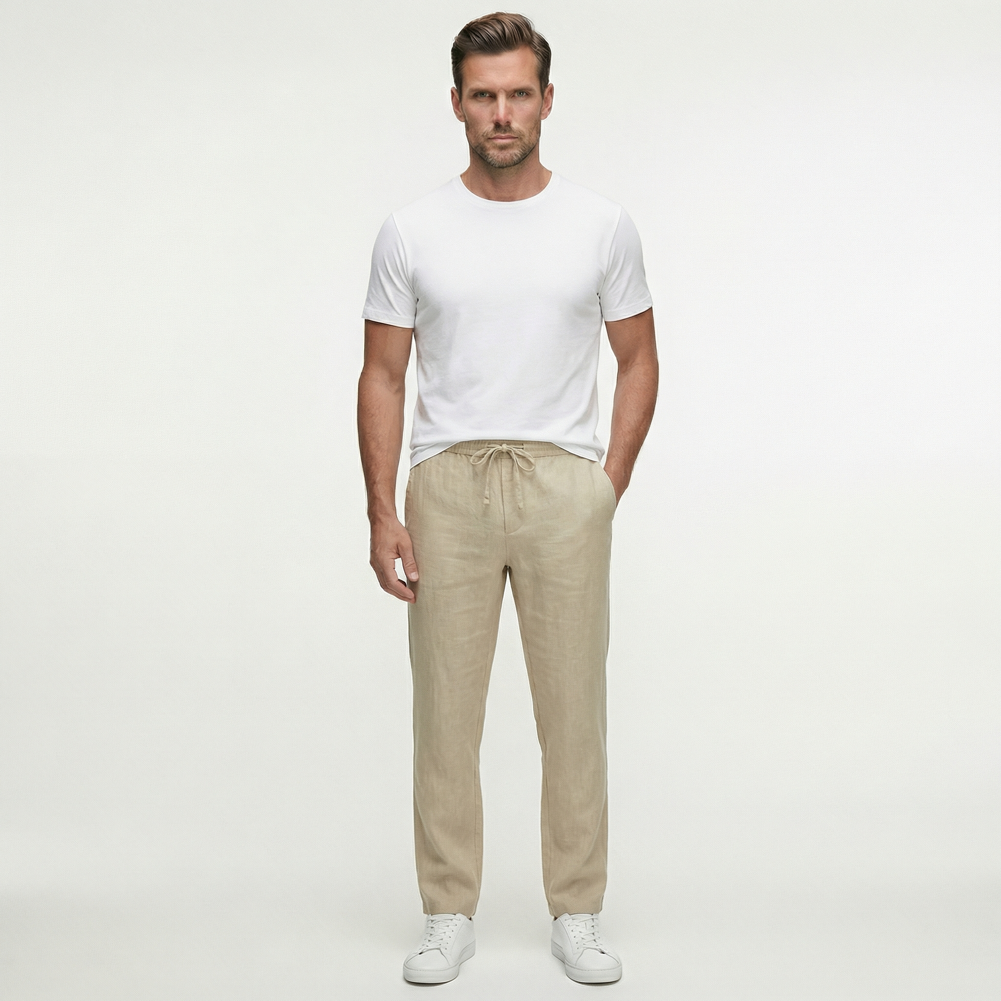 Męskie lniane spodnie ze sznurkiem | Lekkie spodnie na letni, swobodny styl