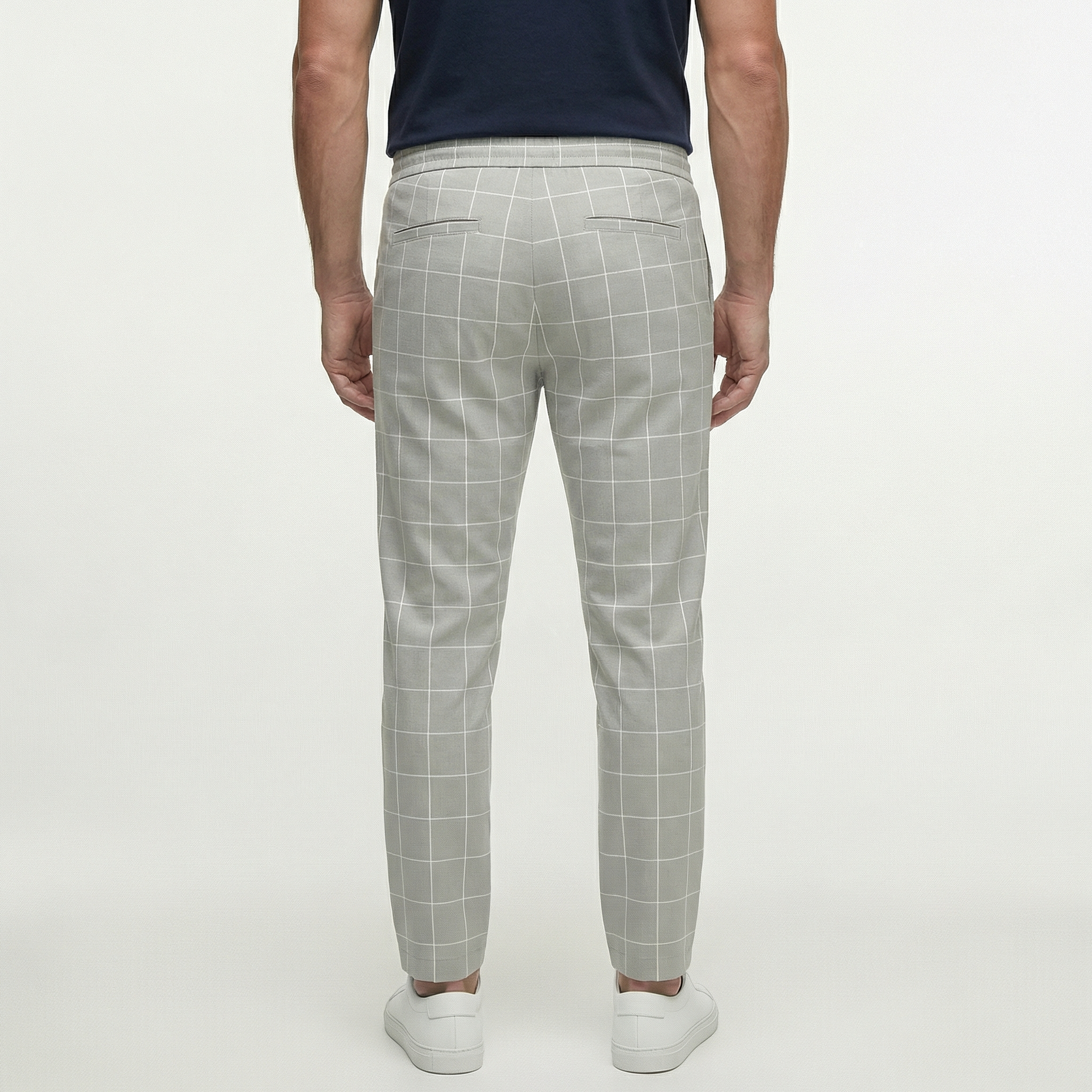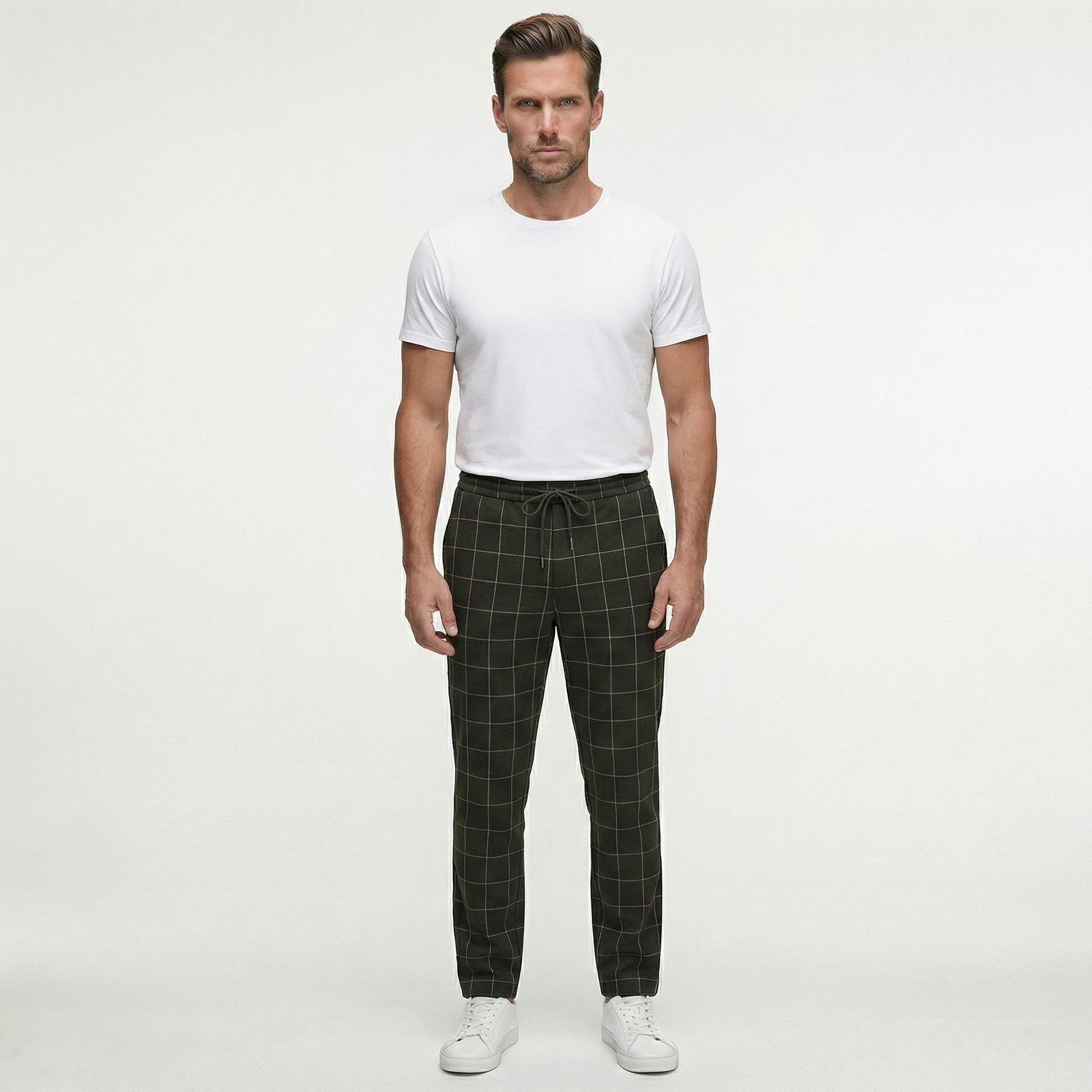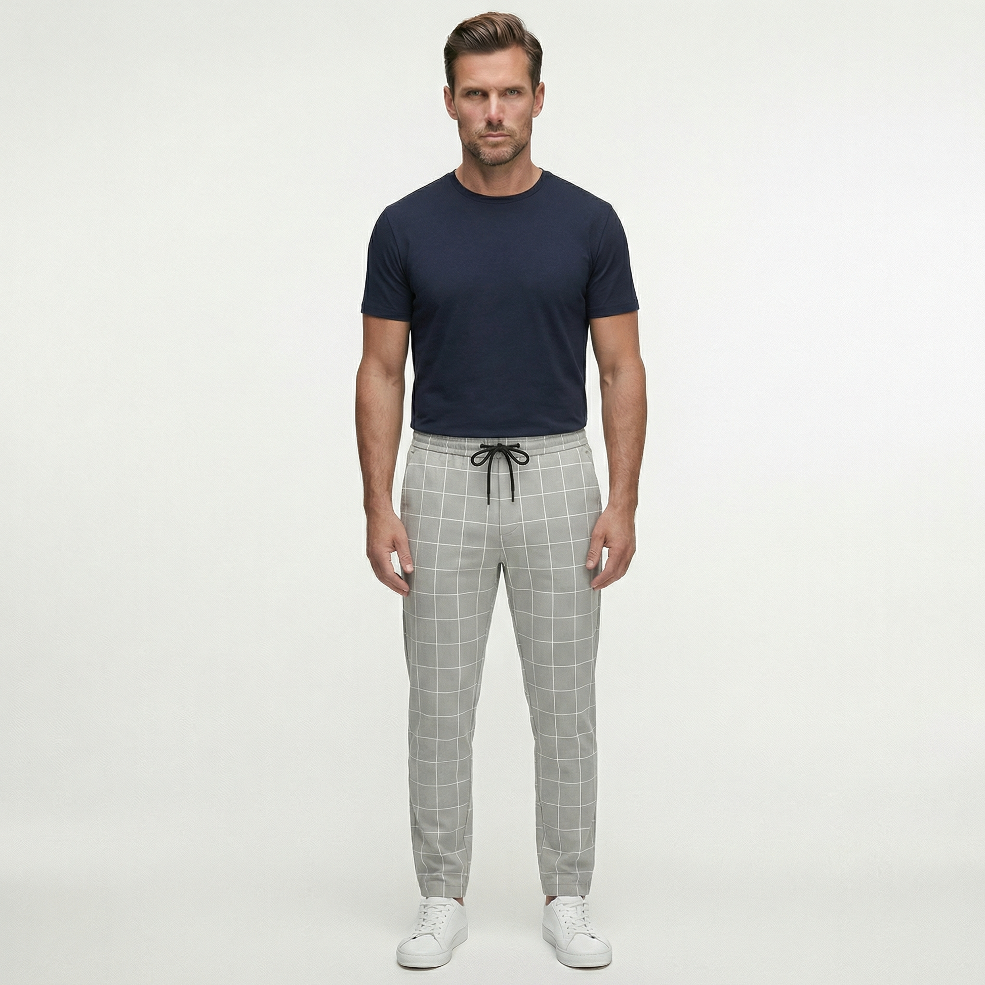 Męskie spodnie w kratę ze sznurkiem | Nowoczesne spodnie casual o dopasowanym kroju